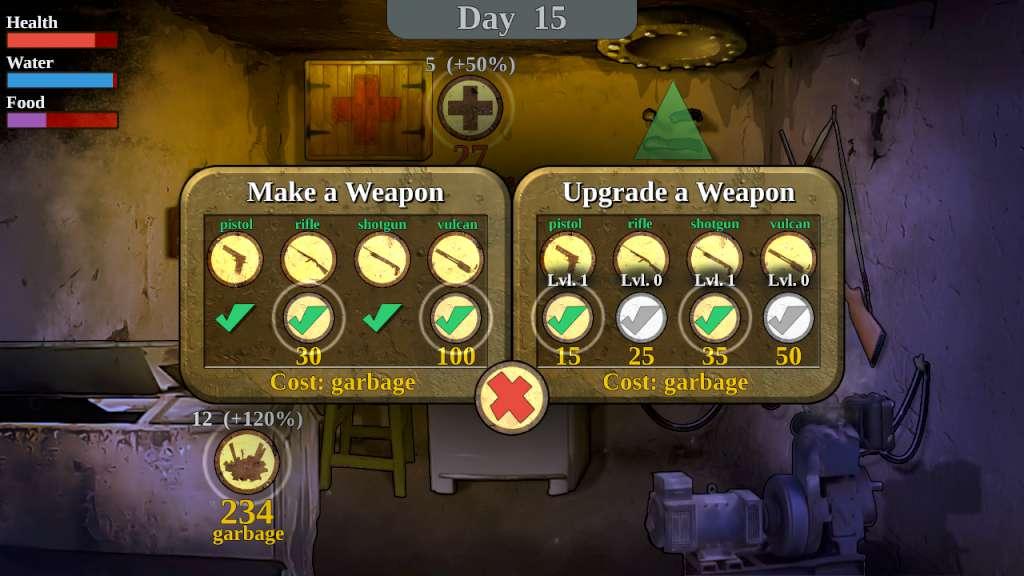 It’s time to test.Surviving is the main task.This is author’s project was created especially for funs of survival. Features Unique game mechanics. Upgrade of your Shelter (no limit). Creation and upgrade of weapons (no limit). Life indicators (health, thirst, hunger). Confrontation with Infected. Collecting resources. English and Russian language. Opportunity to start a new game with a record of days gone by. Training for young survivors.