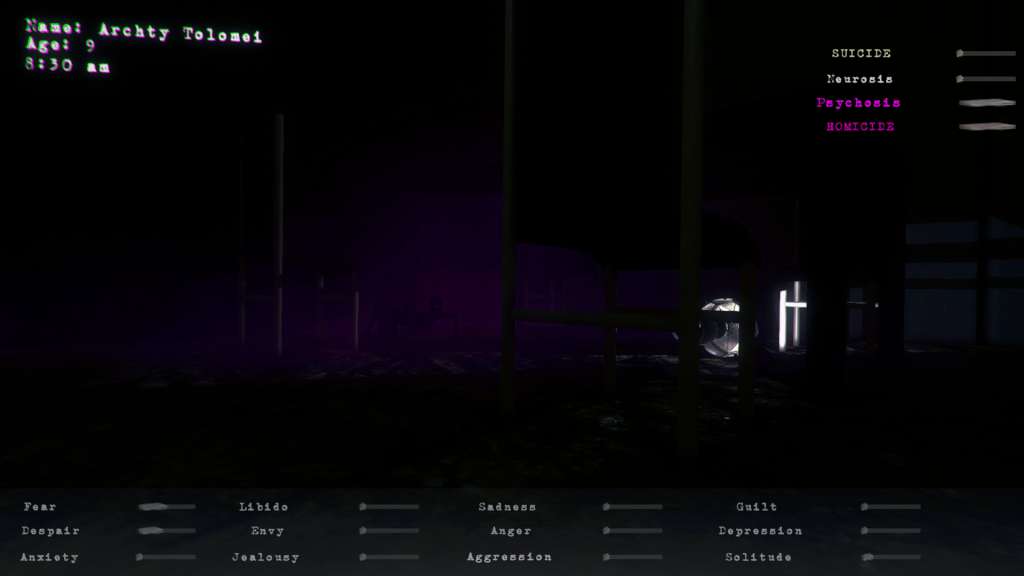 The Archetype Steam CD Key Platform: Steam Release Date: 18 Sep, 2015 Product Description Archty Tolomei is a 9 years old boy that lives with his dad. In 2008, his mom left the house with his two sisters and a little baby, only to come back in 2009 asking for forgiveness. During a huge fight, Lisa, one of Archty’s sisters, called 911. When they arrived, Archty’s father claimed she stormed out again with the children, but Archty had a feeling they were all still in the house. The Archetype is a psychological-horror where you’ll be in control (or not) of Archty’s psychological aspects, like Fear, Despair, Anxiety, Sadness, Jealousy, Anger, Aggression, Libido, Envy, Guilt, Depression and Solitude. As you explore the 4 chapters of Archty’s life, you’ll have to deal with his anxiety disorder and schizophrenia. The neurosis, psychosis, suicide and homicide meters will go up and down, depending on how the environment and dialogs affect Archty.Help him deal with his alcoholic abusive father, find out what happened to your mother and sisters and reach the end of this epic thriller filled with antipsychotics drugs. The Archetype is a game in 4 chapters. We’re releasing chapter 1, but everyone that buys the game now is buying all 4 chapters. Each chapter will be released every two months. The chapters are (Childhood, Adolescence, Marriage and Old Age). System Requirements OS: Windows 7 Processor: Intel i3 Memory: 512 MB RAM Graphics: Nvidia GeForce 8400 DirectX: Version 10 Hard Drive: 500 MB available space Sound Card: any